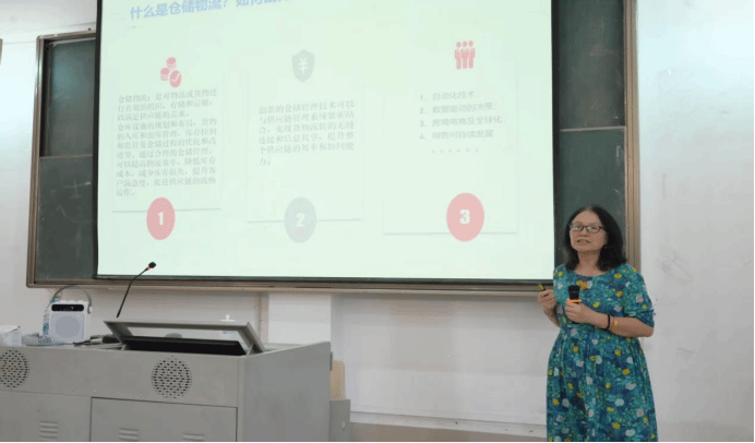 徐凤指出,仓储物流是电商发展的核心支撑,涵盖仓库规划、货物流转、库存控制等关键环节,能有效提升物流效率、降低成本。当前其正朝着自动化技术应用、数据驱动决策、助力跨境电商、践行绿色发展四大方向创新,且与供应链管理系统深度融合后,可进一步增强全链条协同能力。徐凤结合福建龙泰智慧物流数字物流园“仓销配一体化”运营、朴朴超市借5G技术实现数字化管理等案例,具象化展示转型实践;同时提及顺丰全球配送网络、京东“亚洲一号”智能产业园、阿里菜鸟智慧物流园区等企业探索,为师生呈现行业多元发展图景。